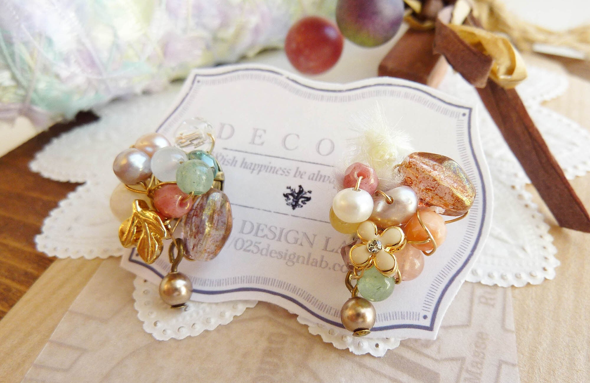 森のビジューな耳飾 / ピアス (葉っぱとお花)