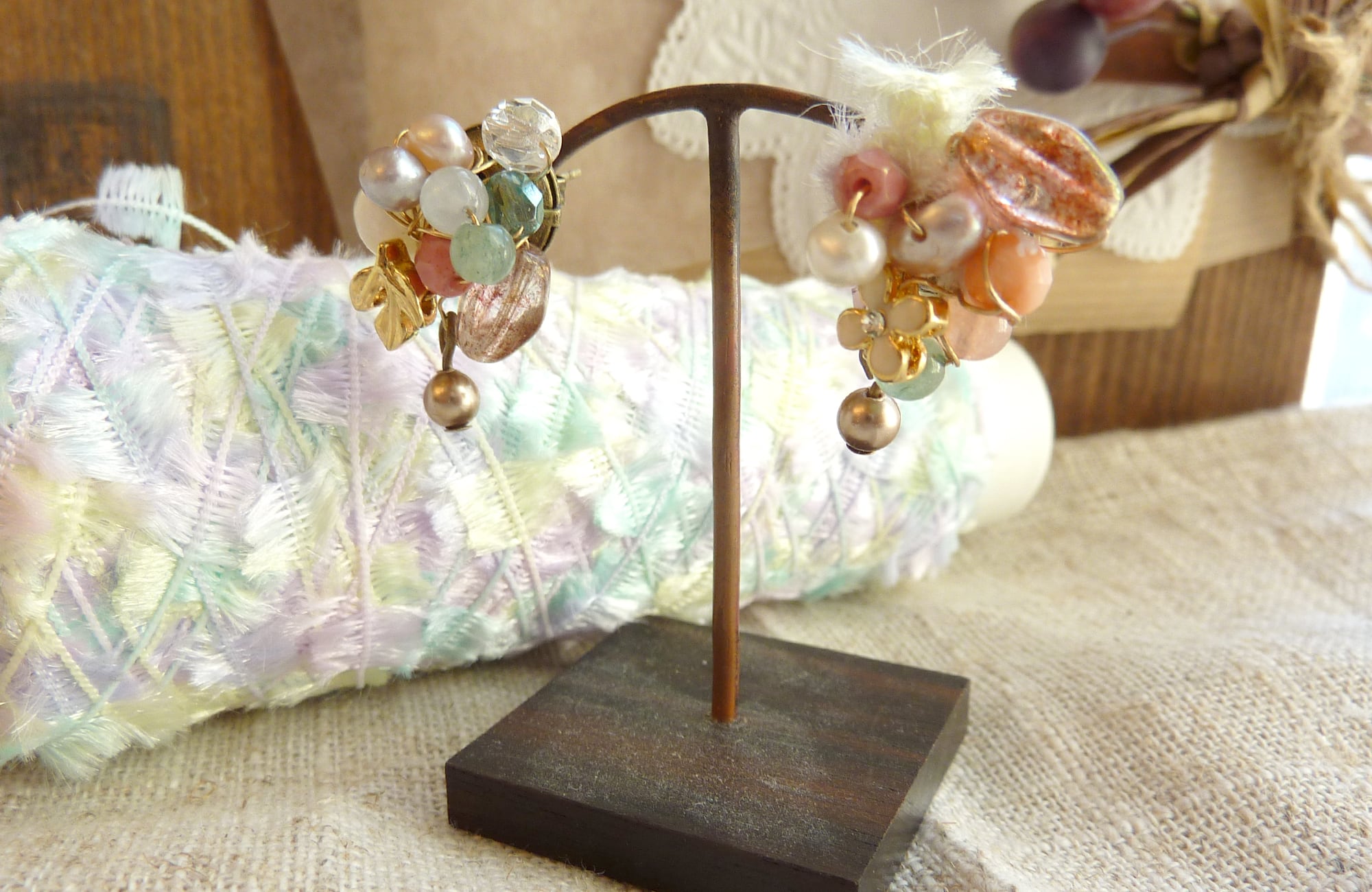 森の風景の優しい色合いをぎゅっと詰め込んだようなアクセサリーになりました。